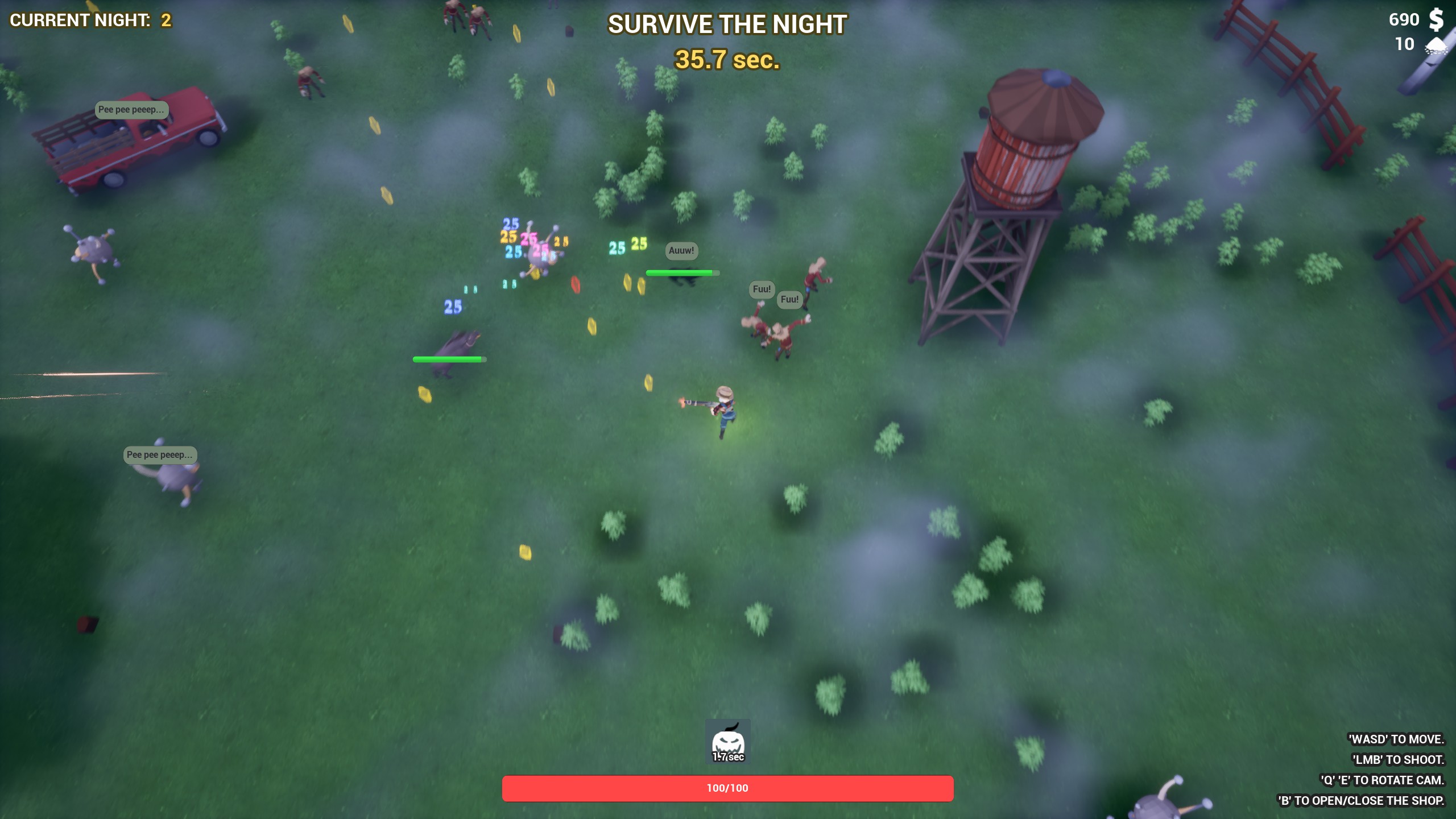 Each night the monster waves get stronger, and every third night, a boss arrives who can turn your whole farm upside down!